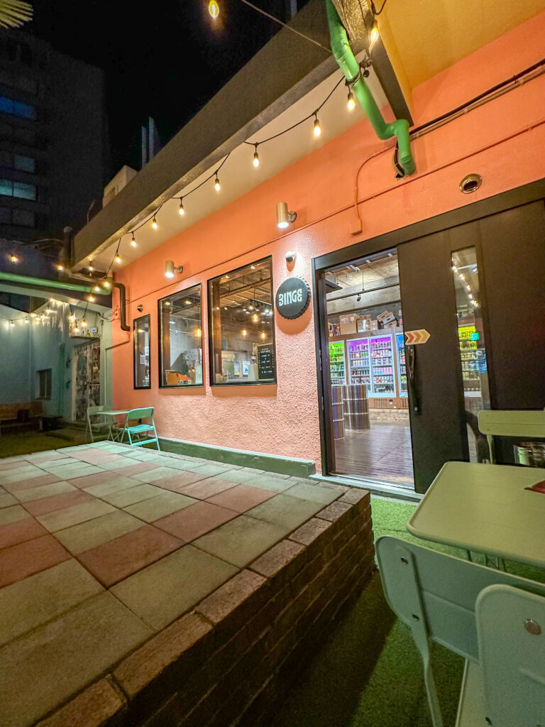 ビルの屋上にBINGE Craftbeerの小屋が立っているような形になっているため、ビールを楽しむゾーンは半屋外になっていますが、屋根があるので雨の日でも濡れずにビールを楽しむことができます!✨